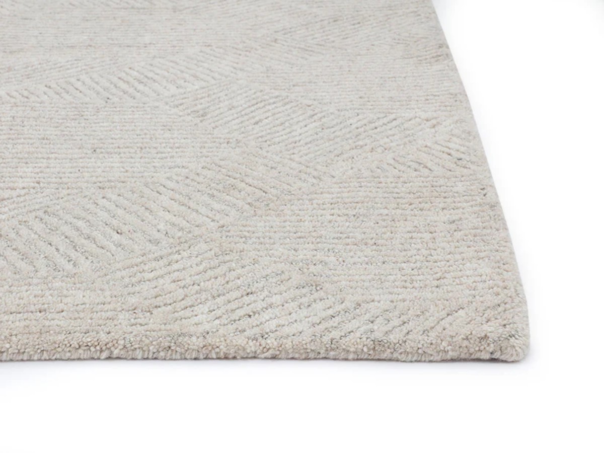 Complete modern and contemporary spaces with this hand-tufted rug. Features a subtle geometric pattern in an oatmeal/grey wool-viscose blend. Available in four sizes. Variations in colour, design and size are to be expected and embraced in each rug due to the distinctive weaving process followed by each artisan, resulting in a truly one-of-a-kind piece. Shedding is inherent to wool rugs and will subside over time with regular vacuuming.