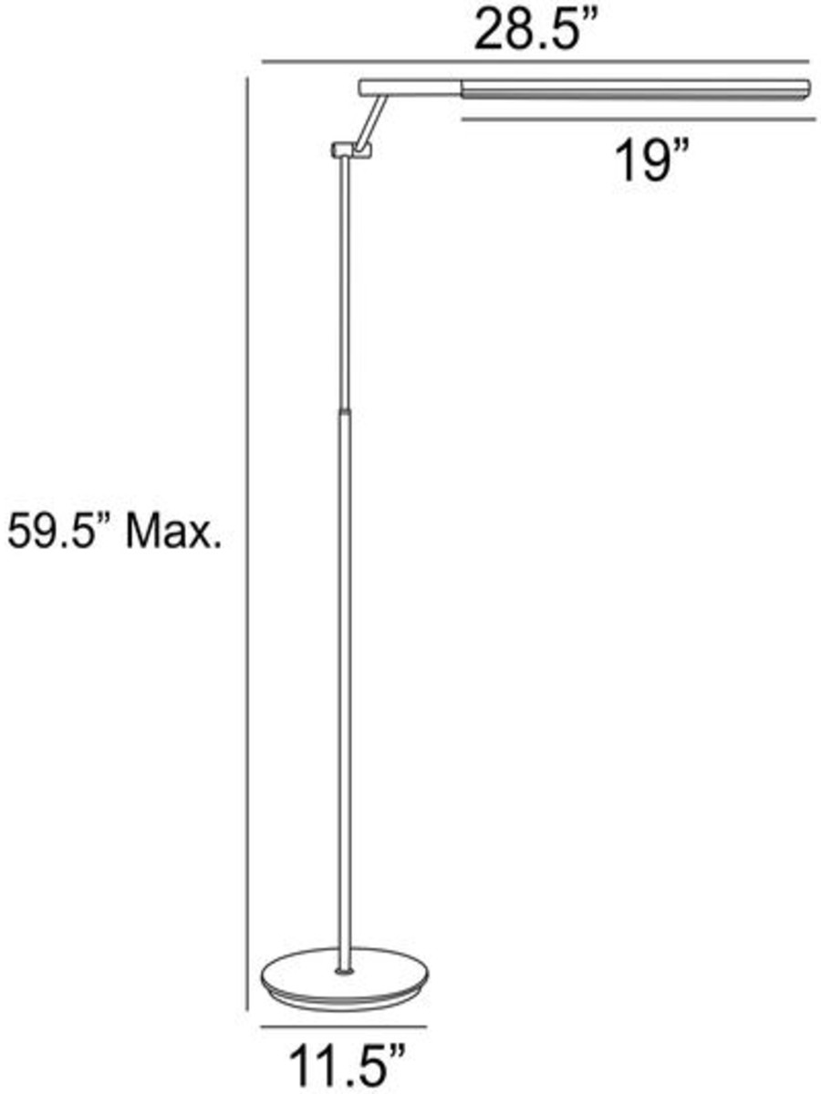 Dimensions: 9.75″ Dia (Base) x 28.5 Wide (Shade: 19″) x 74″ H